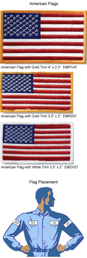The Flag Emblems can be sewn on to any garment. No set up fee is required. No minimum order quantities. The price is $5.49 for each embroidered Flag Emblem.