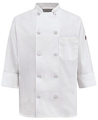 Pocket: Left chest pocket.Thermometer pocket on left sleeve